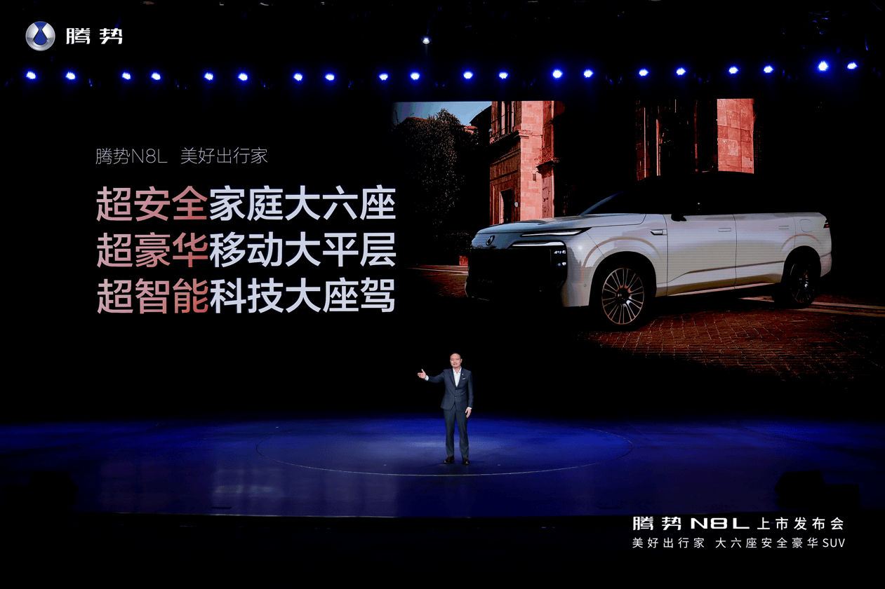 腾势总经理李慧用三句话总结N8L,就是:超安全家庭大六座、超豪华移动大平层、超智能科技大座驾,以硬核技术实力重塑家庭大六座豪华SUV新标准,与每个热爱生活的家庭一起奔赴美好。