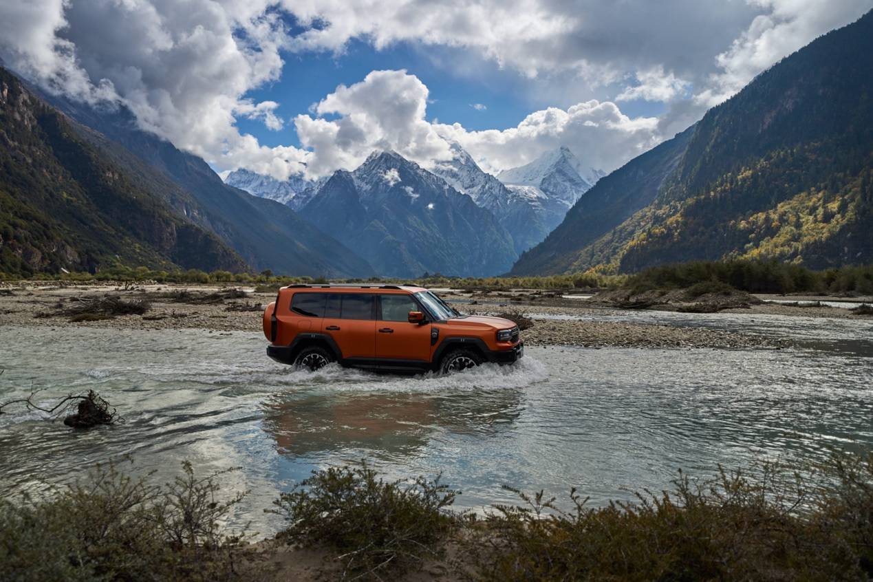 其搭载的鲲鹏超能混动CDM-O系统,以665kW综合功率、904匹马力,媲美V8的发动机,即便在海拔3000米以上的缺氧环境中,仍保持动力无衰减输出,后轮轮端10351N・m峰值扭矩轻松应对陡坡攀爬;全系标配的前中后三把锁(响应时间<100ms),配合内高压一体式大梁,让车辆在交叉轴路况下一次脱困成功率100%。更值得关注的是其“海陆两栖”能力,让其轻松路过涉水路段,纵横G700的核心零部件IP68级防水设计,空悬抬升后离地间隙达320mm,涉水深度最高970mm,接近百万级路虎卫士OCTA水平。