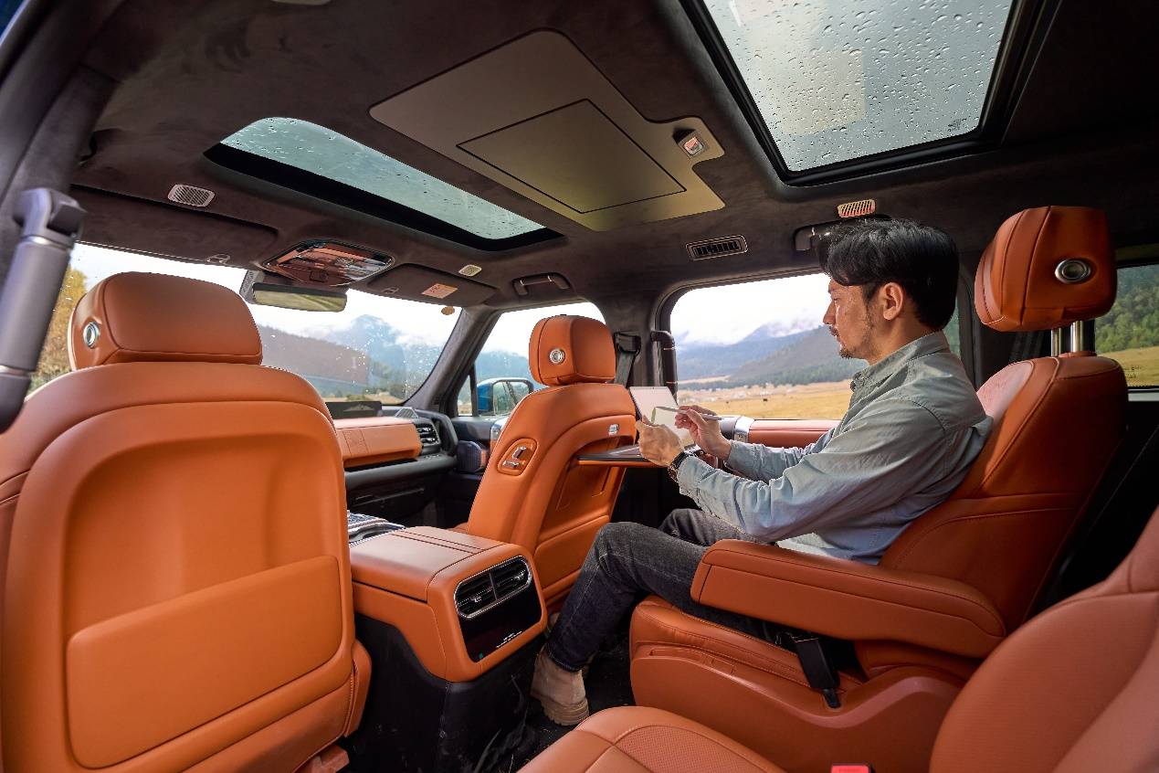 奢享秘境之途:移动豪华旅居别墅,重塑越野舒适标准 “在越野途中享受到行政级豪华”,是G700所有带来的独享体验。云台底盘的空气悬架+CDC系统,每秒1000次采集路面信息,阻尼调节范围超常规减振器5倍,将杂拉沟碎石路的颠簸过滤得近乎无感;云憩智能座椅采用Nappa头层真皮,14层发泡结构配合八点按摩功能,大幅减少长时间越野、穿越后的疲惫感。