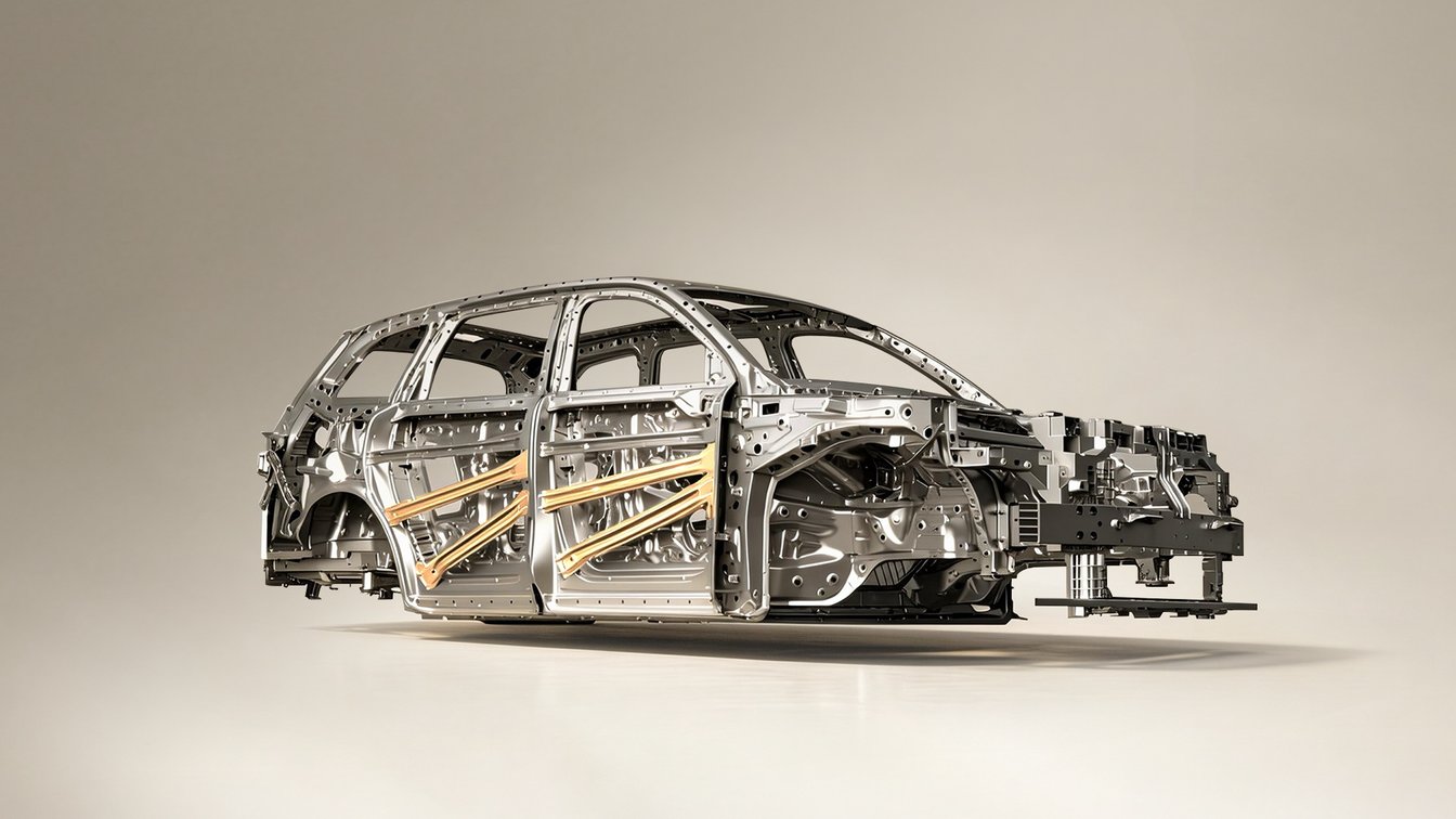 此外,在C-NCAP五星安全测试基础之上,华境S增加了中心柱碰、卡车钻入碰撞、正面30°角度碰撞等测试,全面提升了车辆在多种复杂碰撞场景下的安全性能。 百余项专利加持|华境S用硬核车身结构诠释五星安全底气 上汽通用五菱拥有二十余年技术积淀,研发团队不仅是百余项车身结构专利持有者,更是C-NCAP安全标准制订的重要参与者,将一线研发经验反馈至行业规范。华境S以“6人全员守护”为安全研发理念,从车身结构、材料应用到主被动防护,全方位构建全域安全屏障。 华境S车身吸能区采用铝合金与高强钢组合,历经上千次仿真优化,确保冲击能被巧妙化解;乘员舱采用与顶级供应商宝钢共创并行业首发的1500MPa一体化热成型前地板骨架,以及行业领先的1500MPa一体式热成型门环,侧门防撞梁首次规模化应用2000MPa超高强钢,整车高强度钢占比超85%,配合五纵十一横六环车身结构,极大提升了车身整体扭转刚度,确保在多角度碰撞中,为车内乘员留出生存空间。