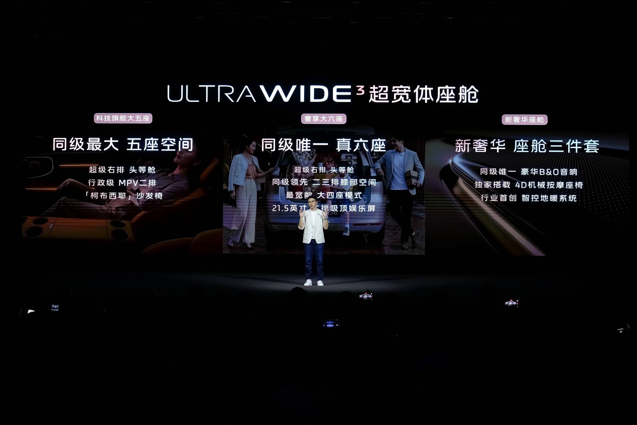 最能装的家庭旗舰:超越想象的奢华大空间,智能时代的新奢华体验 智己LS8搭载全新打造的Ultra Wide³超宽体座舱,科技旗舰大五座坐拥同级最强大空间,二排媲美行政MPV。同级独有的“柯布西耶”沙发椅,拥有132°大躺角与SPA级按摩,打造家用商务双适配的新奢华体验。装载能力同样最强,后备箱轻松放下6个28寸行李箱,高尔夫球包可直接优雅地横向放入。智己LS8还提供奢享大六座的版本选择,第三排绝不将就,座座满载,全家满意;切换大四座模式后,空间更显宽绰体面,搭配21.5英寸二排吸顶娱乐屏,让后排乘客尽享影院级视听体验。