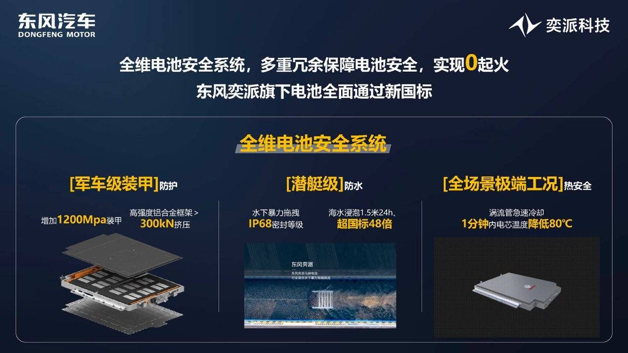 电池安全方面,多重冗余保障,实现“0起火”。构建多维电池安全系统,多重冗余确保电池安全。电池经过海水浸泡、枪击测试、高空跌落的“海陆空”三栖挑战测试,以军工级安全标准守护用户出行。目前,奕派科技旗下的电池安全远超新国标。