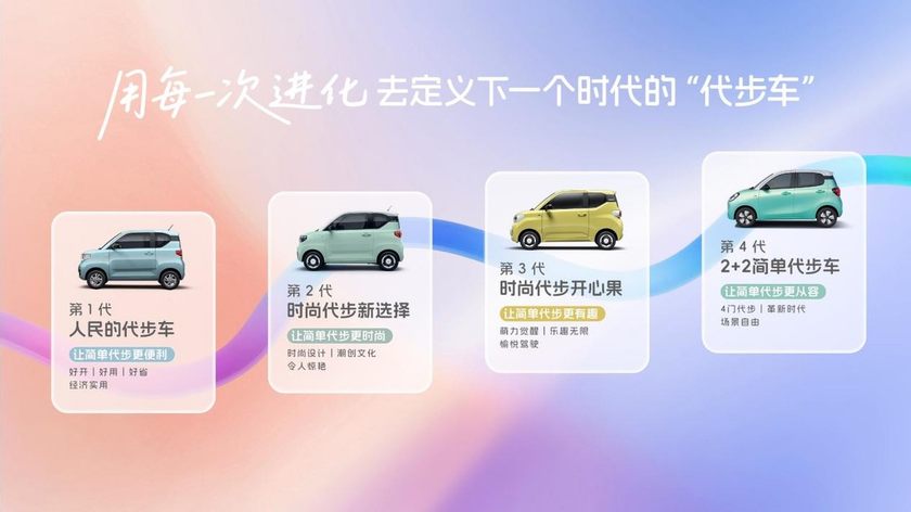 五代进化,每一代都在刷新代步车的标准线 2020 年,第一代宏光MINIEV 以“人民的代步车”定位登场,开创新能源代步车新品类,凭借经济实用的优势,上市首年便拿下全国小型新能源汽车销量冠军。此后家族持续迭代升级,第二代马卡龙、GAMEBOY 注入时尚潮创基因,第三代聚焦驾乘愉悦,第四代四门版推出全新四门四座布局,开启代步车四门时代,每一代都精准贴合用户需求,不断推动代步车品类价值升级。